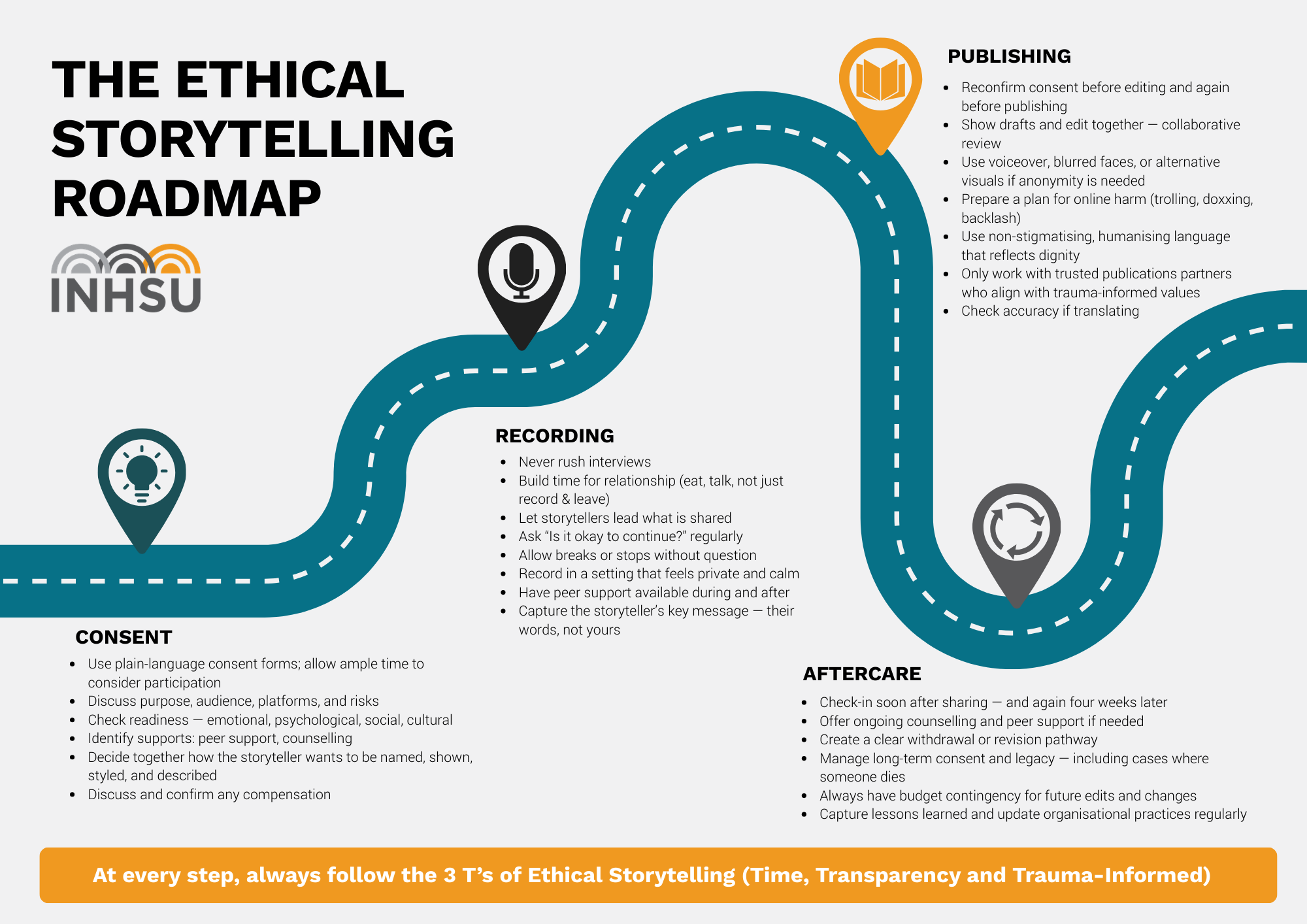 As discussed in INHSU’s Ethical Storytelling Roadmap and launch webinar, harm can occur long after publication — including online abuse, loss of employment, housing issues, or being identified in ways people didn’t anticipate.